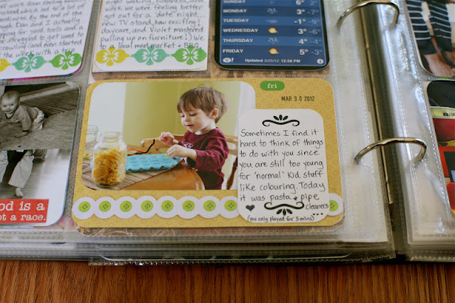 I know I say it all the time, but I seriously LOVE this project. I was a bit doubtful at first that I would be able to keep it up, I thought for sure that I would get too busy or bored like I usually do, but I've managed to keep it up, and even when/if I fall a bit behind, I always manage to catch back up. And even though I've been sure a few times that I wouldn't have enough photos, that has never once been the case (in some instances I don't take photos everyday so the photos are only from 2-3 events, but really that's not an issue for me). I pick up my camera WAY more this year than last year, and with 2 small kids, that's a big deal. I'm happy that I've been recording so much of the kids' lives, Violet's especially, because as I've said, this will most likely be her 'baby book'. Milestones are being captured here, and more importantly, all the little everyday stuff is being captured too. Love.